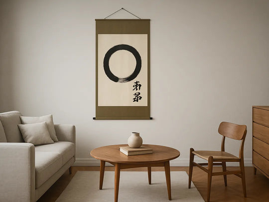 西国三十三ヶ所を巡礼し満願を迎えた方が、その証として御朱印を表装。 本来、納経帳に収められた朱印を、掛け軸という格式ある形式で仕立て直すことで、人生の節目や信仰の証としての重みが加わります。 法要時や特別な節目には床の間に飾り、心を静かに整える“祈りの演出”としても活用されています。