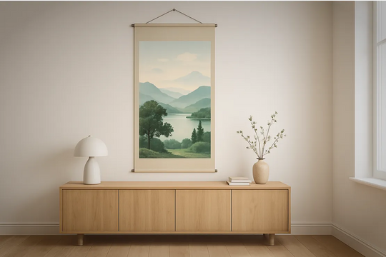 四季の自然や水墨画の掛け軸は、空間に穏やかさを与え、毎日の暮らしに癒しを添えてくれます。